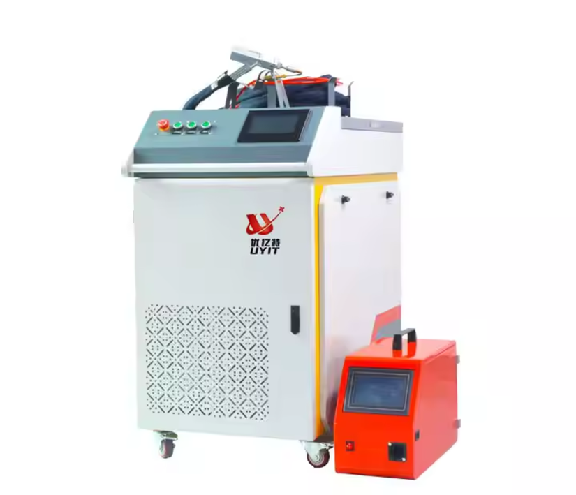 เครื่องเชื่อมเลเซอร์มือถือ 1500W จาก UYIT เป็นโซลูชันงานเชื่อมที่ผสมผสานความหลากหลายของการใช้งานเข้ากับความสะดวกสบายในการใช้งาน เหมาะสำหรับการเชื่อมที่แม่นยำ การตัดสแตนเลส การกำจัดสนิม และการทำความสะอาดพื้นผิวโลหะ สามารถนำไปใช้งานในอุตสาหกรรมต่าง ๆ เช่น โรงแรม โรงงานผลิต งานก่อสร้าง และอุตสาหกรรมโฆษณา