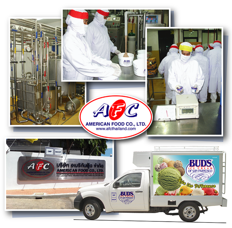 ดำเนินการผลิตและจำหน่ายไอศกรีมและผลิตภัณฑ์อาหารจานด่วนอื่นๆ ทั่วโลก จากฐานการผลิตในกรุงเทพฯ ผลิตภัณฑ์หลักของ AFC คือ Bud's Ice Cream ซึ่งผลิตในโรงงานที่ทันสมัยของบริษัทในกรุงเทพฯ
