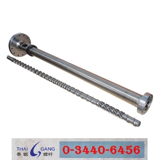 สกรูสำหรับงานเป่าพลาสติก (Blow film extrusion screw barrel) ผลิตจากวัสดุโลหะผสม ไบเมทัลลิค (Bimetallic screw barrel) ทังสเตน ผสมอัลลอย Alloy (38CrMoAIA) และ สกรูชุบ PTA, สกรูชุบไนไตร