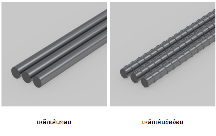 -เหล็กเส้นข้ออ้อย : ลักษณะเป็นปล้องคล้ายกับอ้อย โดยมีระยะบั้งที่สม่ำเสมอตลอดทั้งเส้น ไม่มีรอยแตกร้าว ซึ่งจะช่วยให้เหล็กยึดเหนี่ยวกับคอนกรีตได้ดี