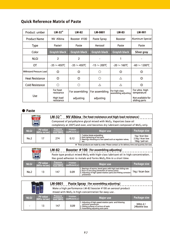น้ำมันและพาสต้าต้านทานภาระหนักเหมาะสำหรับการใช้งานดังนี้: