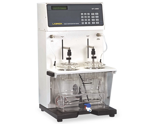 "DT 1000" ของ Labindia เป็นเครื่องทดสอบการสลายตัวของยาเม็ดที่ถูกออกแบบมาสำหรับอุตสาหกรรมยา อุปกรณ์นี้ใช้ในการประเมินว่ายาเม็ดหรือแคปซูลสลายตัวภายในร่างกายอย่างไรอย่างรวดเร็วและแม่นยำ รองรับโปรโตคอลการทดสอบที่เป็นไปตามมาตรฐาน (มาตรฐานสากล เช่น USP และ EP) เพื่อมอบการประกันคุณภาพที่เชื่อถือได้ในกระบวนการผลิต