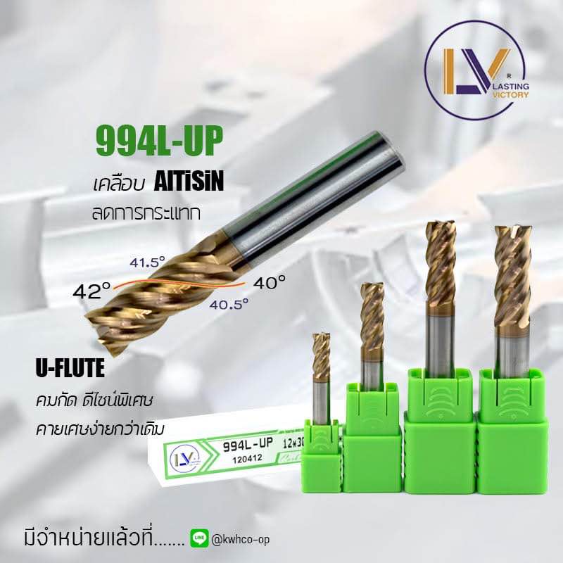 หัวกัดเอ็นมิลล์รุ่น 994L-UP จาก KWH COOPERATION CO., LTD. ออกแบบมาสำหรับงานตัดเฉือนที่ต้องการความแม่นยำและประสิทธิภาพสูง รองรับวัสดุหลากหลายชนิด พร้อมเทคโนโลยีที่ช่วยยืดอายุการใช้งานเครื่องมือ