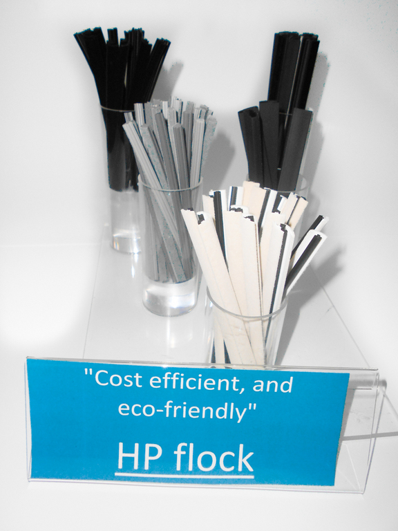 “HP Flock®” ใช้กระบวนการขึ้นรูปแบบพิเศษเพื่อให้ได้ผลลัพธ์เช่นเดียวกับการเคลือบขนไฟฟ้าสถิต ซึ่งเคยใช้กันในรางกระจกของรถยนต์ โดยช่วยลดต้นทุนและปรับปรุงความเป็นมิตรต่อสิ่งแวดล้อมอย่างมาก
