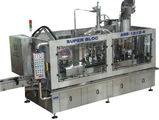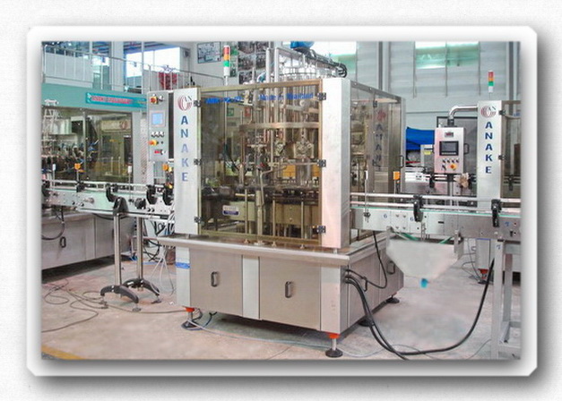 ในขณะที่เครื่องล้างกำลังทำความสะอาดขวด เครื่องจะหมุนรอบตัวเอง เพื่อให้ขวดที่ล้างเรียบร้อยแล้วได้เคลื่อนมาเตรียมออกสู่จานรับพาขวด ขณะที่จานรับพาขวด (Star wheel) ส่งขวดเข้าไปใต้หัวบรรจุ โดยวางขวดเปล่าลงบนแท่นรับขวด แท่นรับขวดจะเคลื่อนตัวขึ้นเพื่อพาขวดขึ้นไปสู่หัวบรรจุด้านบน เมื่อหัวบรรจุถูกเปิดออกด้วยแรงดัน0องขวด ในขณะที่ปากขวดแนบสนิทกับซีลหัวบรรจุ น้ำผลิตภัณฑ์ซึ่งอยู่ในถังพักผลิตภัณฑ์จะไหลลงขวดเข้าไปแทนที่อากาศภายในขวดตามปริมาตรที่กำหนดไว้โดยระบบแรงดันของน้ำ ( Pressure Fill ) ในขณะที่เครื่องกำลังบรรจุผลิตภัณฑ์ลงขวดนั้น เครื่องจะหมุนรอบตัวเอง เมื่อมีการบรรจุผลิตภัณฑ์ได้รับปริมาตรตามที่กำหนดไว้แล้ว หัวบรรจุจะปิดสนิทด้วยแรงดันสปริงกับซีลกันหยด จากนั้น แท่นรับขวดจะเคลื่อนตัวลงสู่ระดับสายพาน พร้อมกับแยกออกจากหัวบรรจุไปสู่ขั้นตอนการปิดฝา ด้วยจานรับพาขวด.